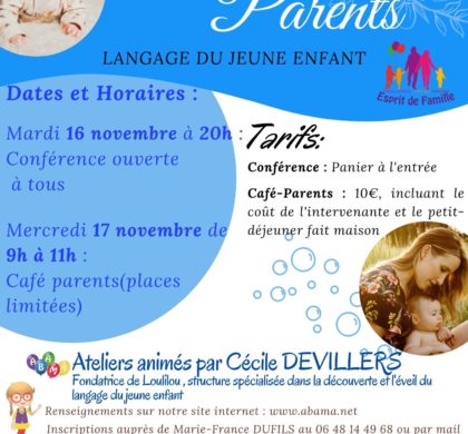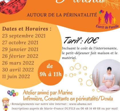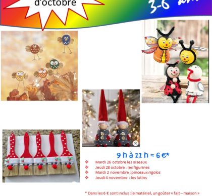 Le jeudi 31 octobre de 10h à 11h30, Alexia organise un atelier créatif pour les enfants (à partir de 2 ans) dans les locaux de l’ABAMA. Informations et inscriptions auprès d’Alexia au 06 31 36 55 50.